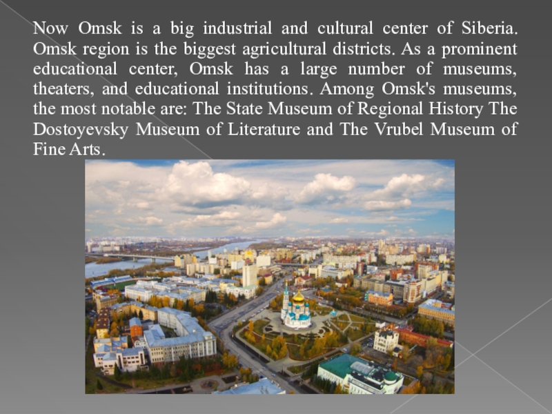 Слайд 3Now Omsk is a big industrial and cultural center of Siberia.