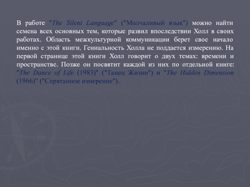 Слайд 9В работе "The Silent Language" ("Молчаливый язык") можно найти семена всех