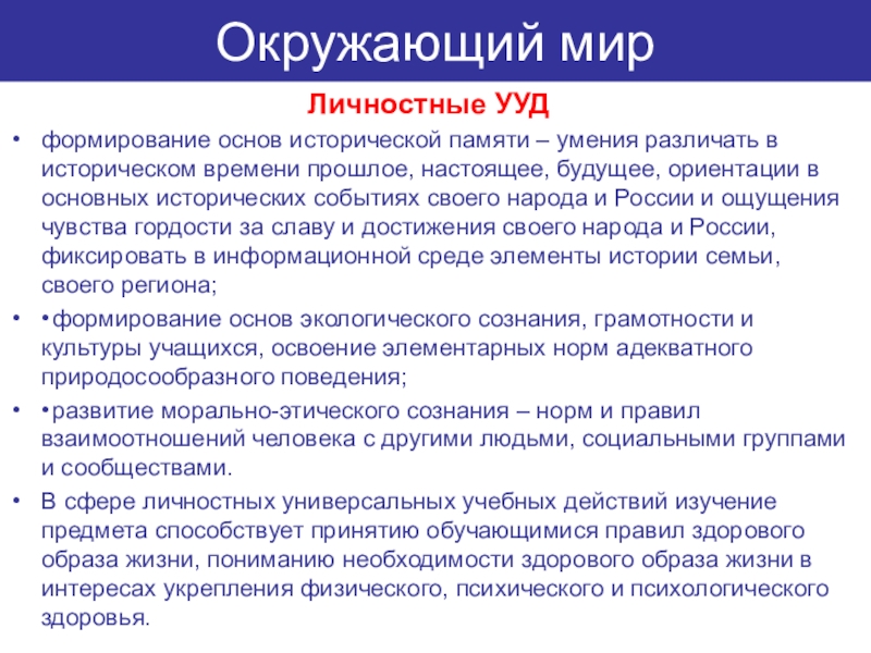 Каждый учебный предмет в зависимости от предметного содержания и способов организации учебной деятельности обучающихся раскрывает определённые возможности для формирования универсальных учебных действий