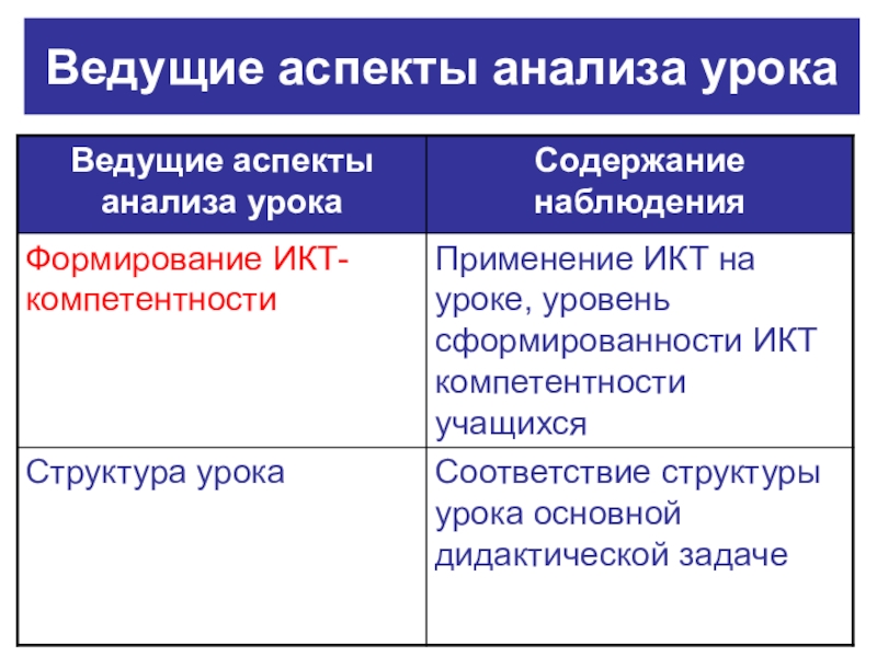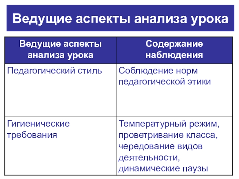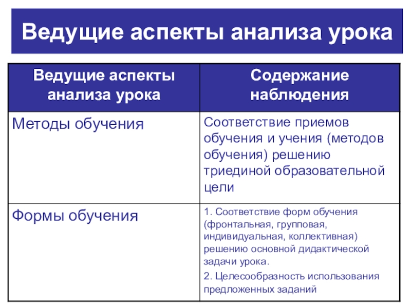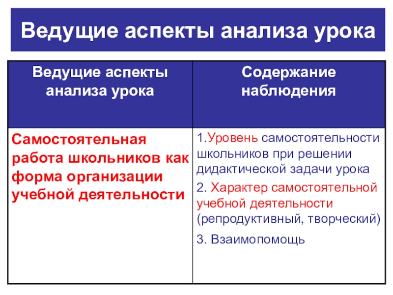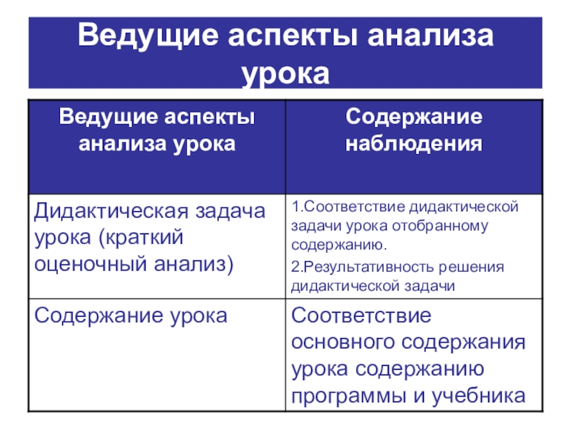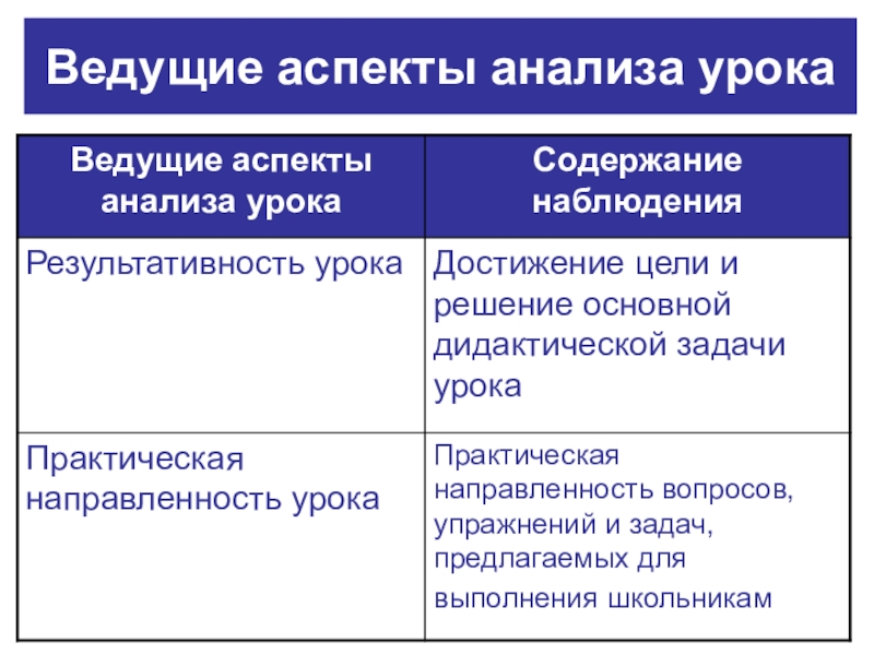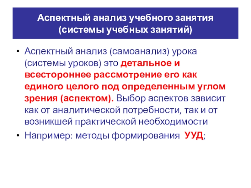 Аспектный анализ (самоанализ) урока (системы уроков)