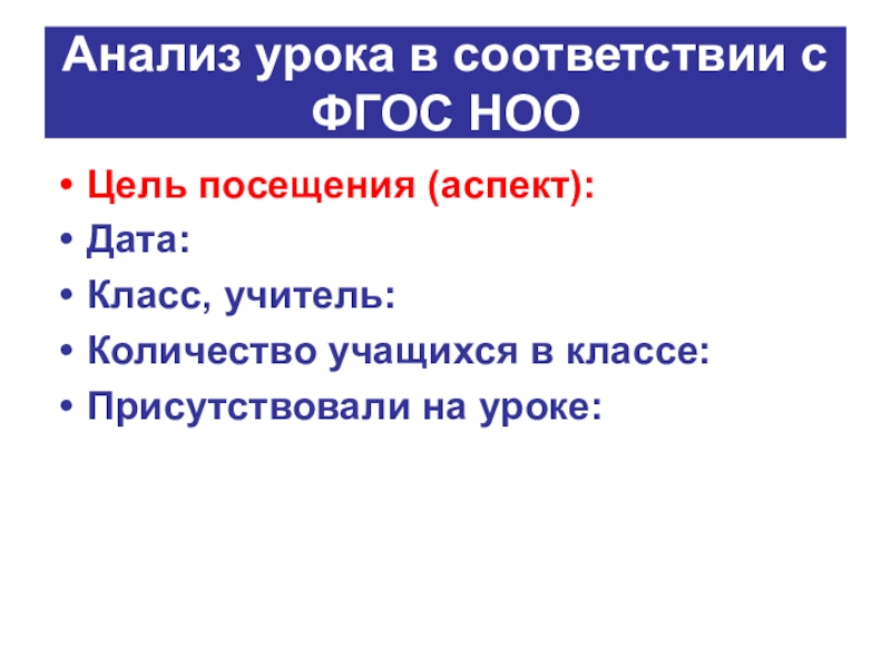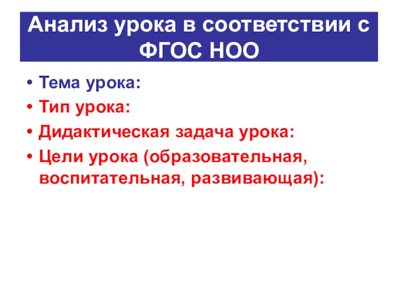Слайд 12Анализ урока в соответствии с ФГОС НОО