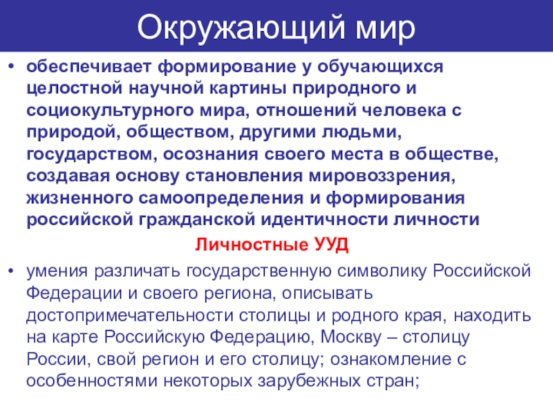 Изучение русского языка создаёт условия для формирования «языкового чутья» как результата ориентировки ребёнка в грамматической и синтаксической структуре родного языка и обеспечивает успешное развитие адекватных возрасту форм и функций речи, включая обобщающую и планирующую функции.