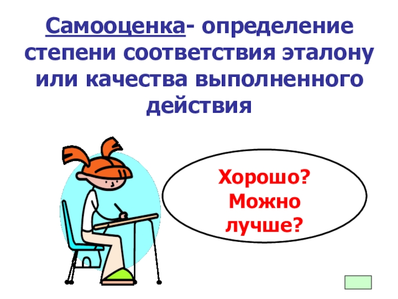 Самооценка- определение степени соответствия эталону или качества выполненного действия
