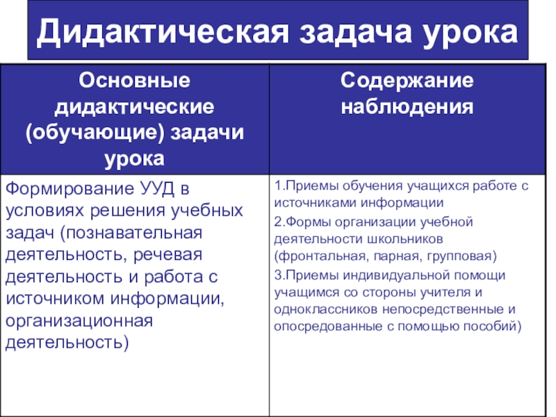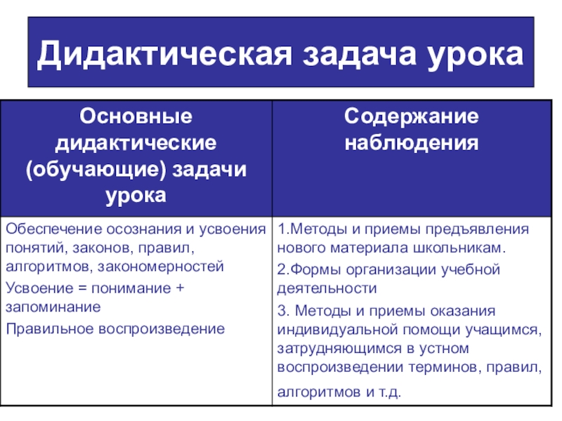 Образовательная - соотносится с темой и содержанием урока, его дидактической