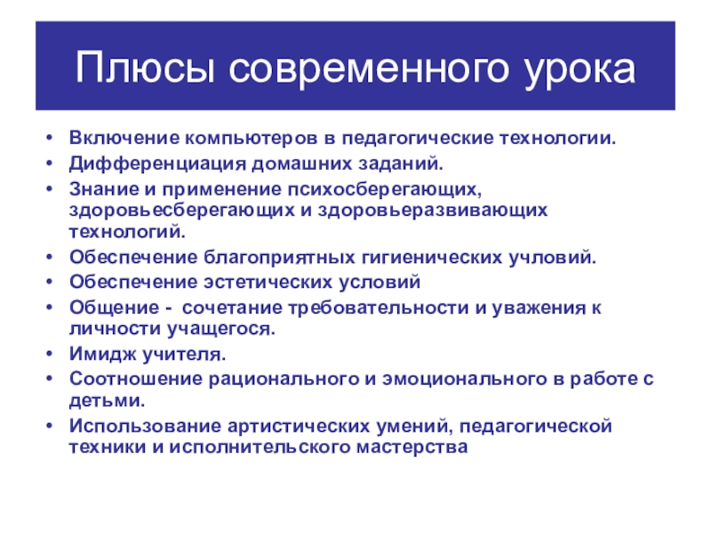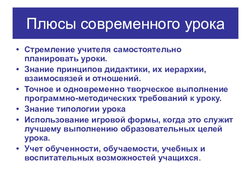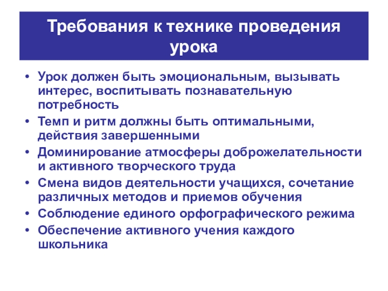 Точное и одновременно творческое выполнение программно-методических требований к уроку.
