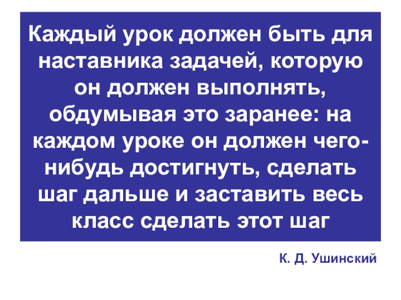 Слайд 2Каждый урок должен быть для наставника задачей, которую он должен выполнять,