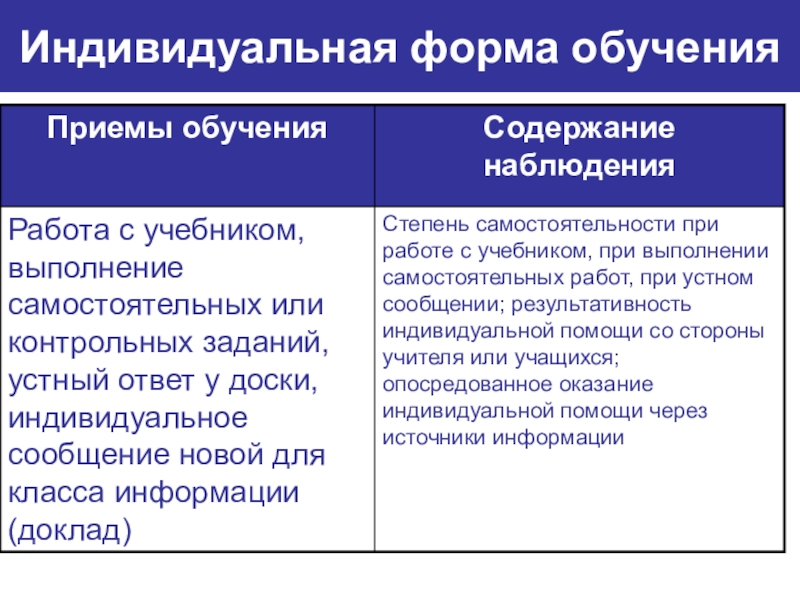 Сочетание общеклассных форм работы с групповыми и индивидуальными.