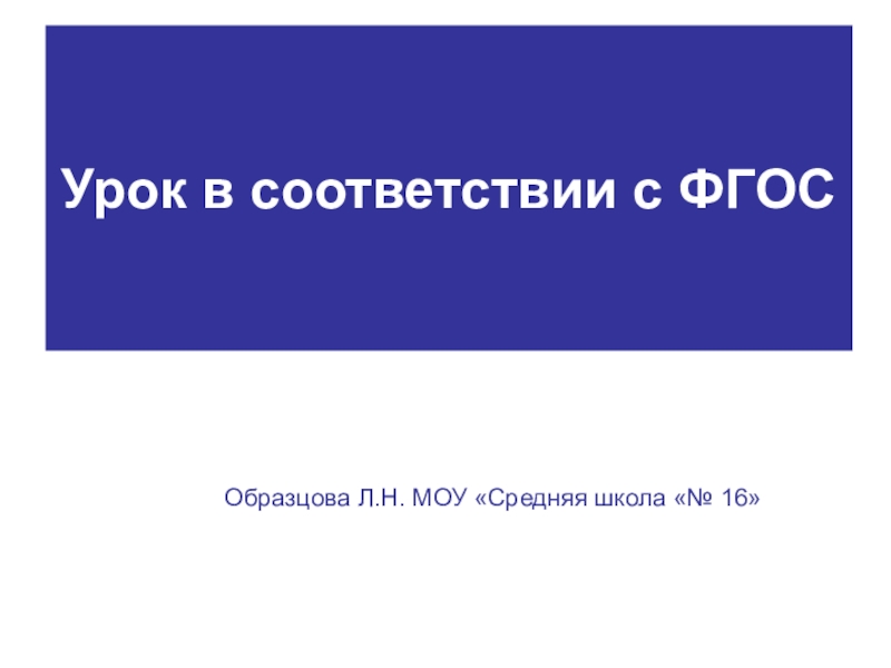 Образцова Л.Н. МОУ «Средняя школа «№ 16»