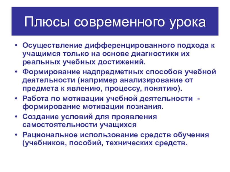 Учет обученности, обучаемости, учебных и воспитательных возможностей учащихся.