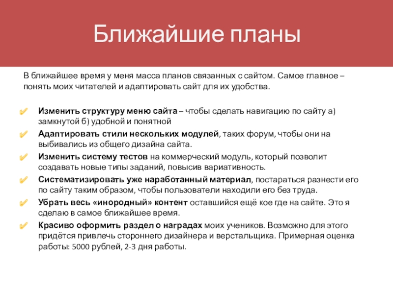 Ближайшие планы