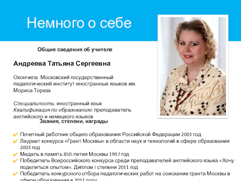 Победитель Всероссийского конкурса среди преподавателей английского языка «Хочу поделиться опытом». Диплом I степени 2011 год