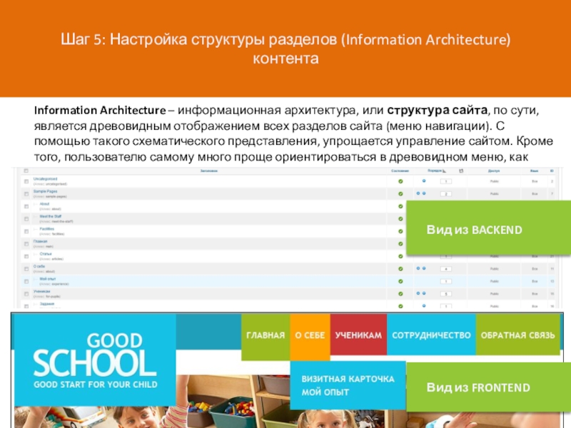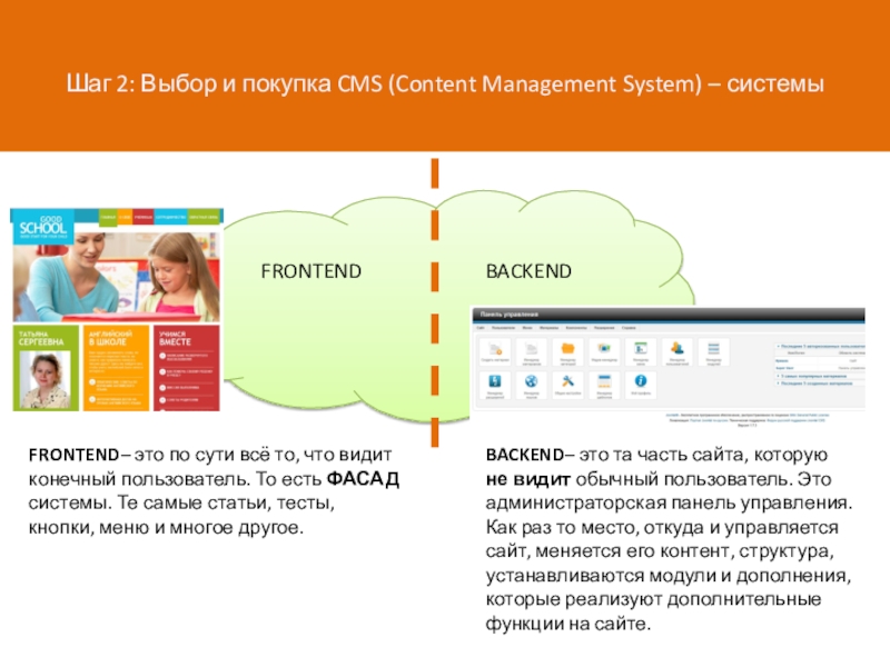 CMS реализует ДВА логических пространства, которые называются: FRONTEND и BACKEND