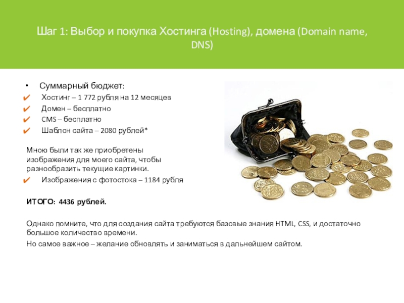 Шаг 1: Выбор и покупка Хостинга (Hosting), домена (Domain name, DNS)