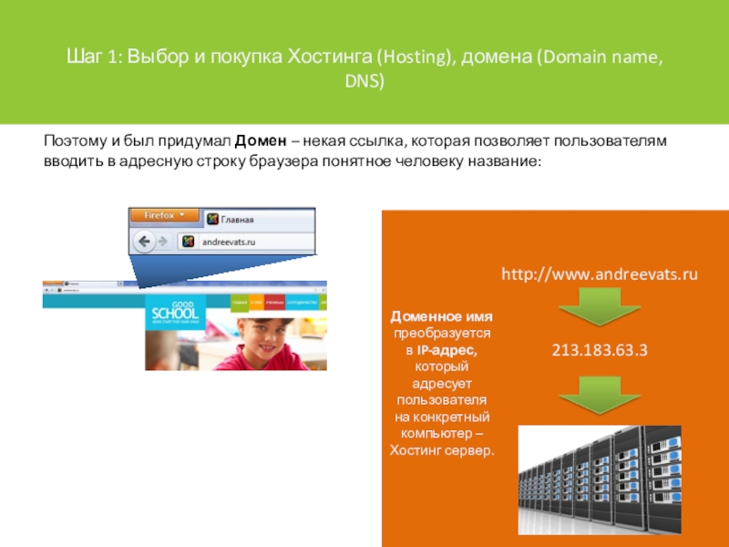 Доменное имя преобразуется в IP-адрес, который адресует пользователя на конкретный компьютер – Хостинг сервер.
