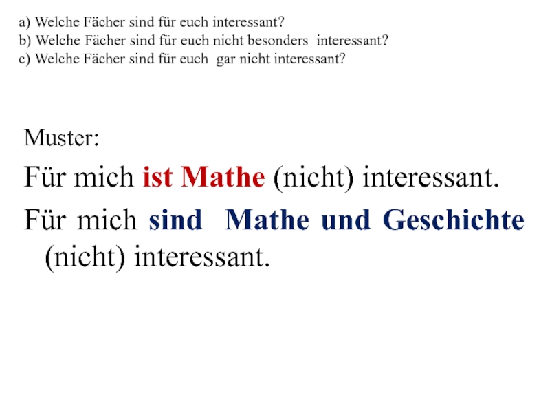 Für mich sind Mathe und Geschichte (nicht) interessant.