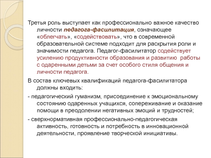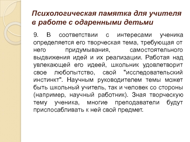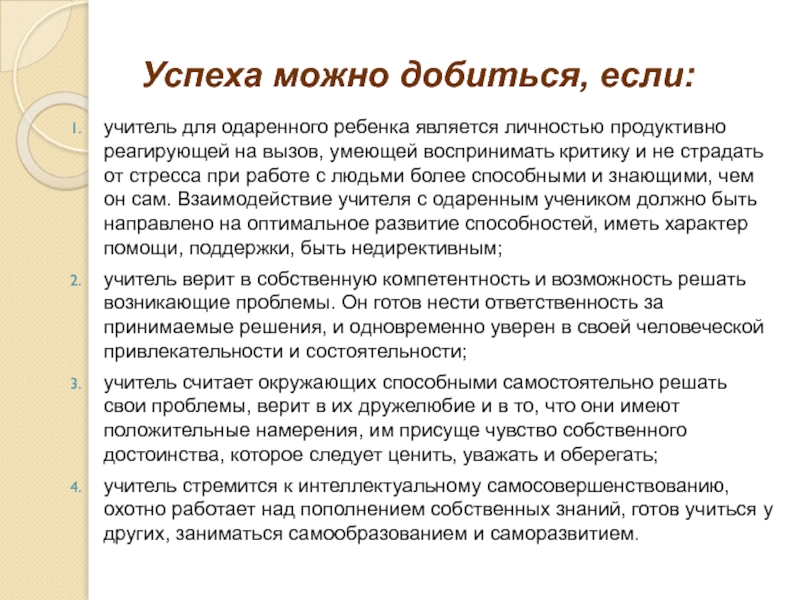 3. Педагог обязан увидеть и выявить грани одаренности, создать все условия для ее развития и реализации.