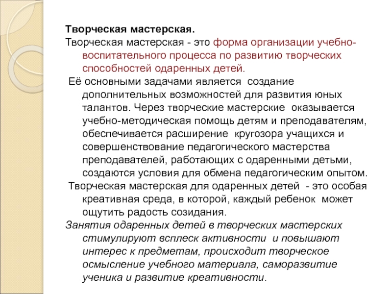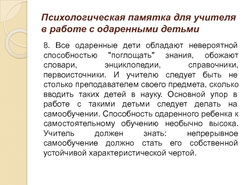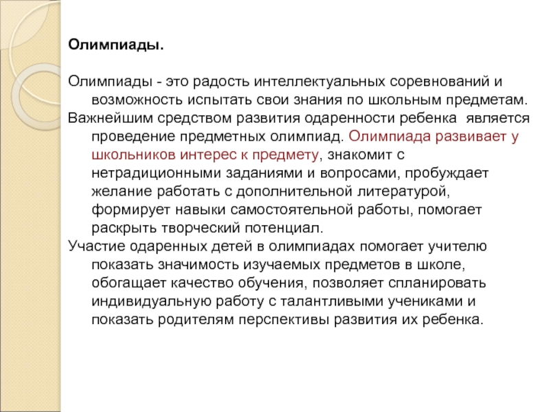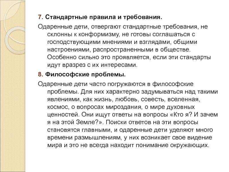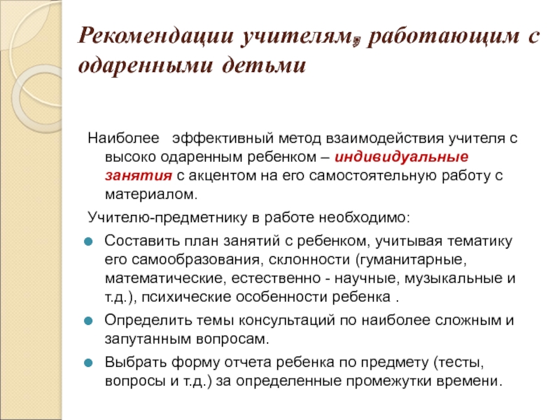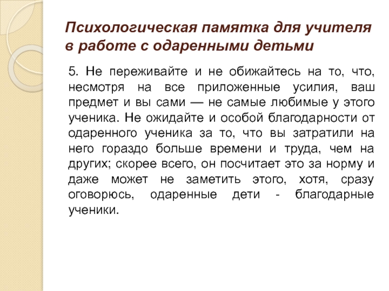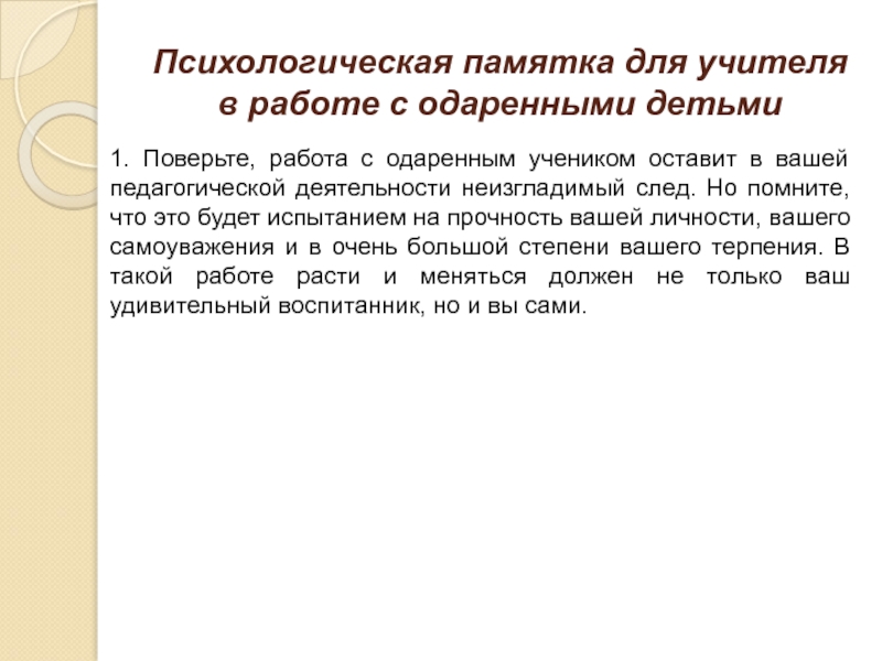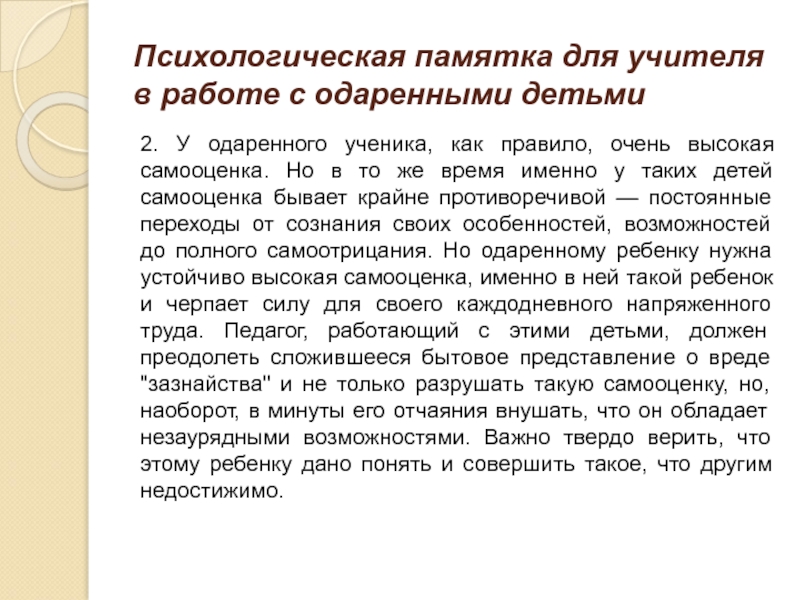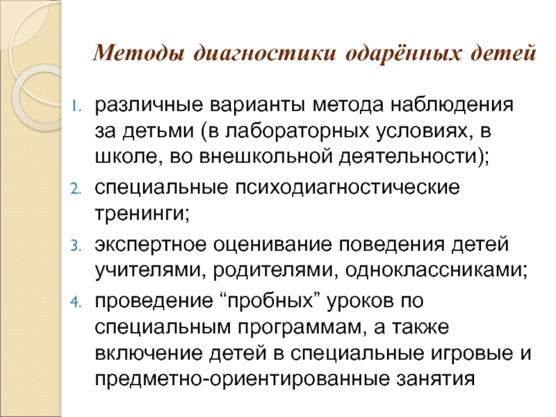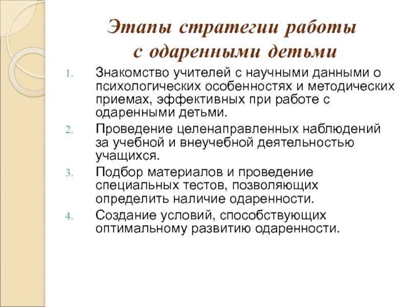 4) выявление одаренных детей – продолжительный процесс, связанный с анализом развития конкретного ребенка.