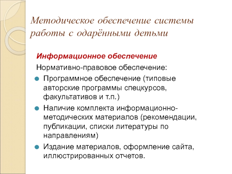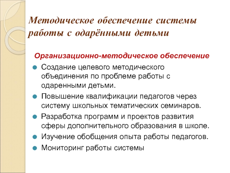 Слайд 24Методическое обеспечение системы работы с одарёнными детьми