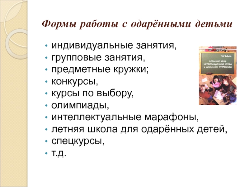 7.Формы работы с одарёнными детьми. Выберите неправильный ответ: