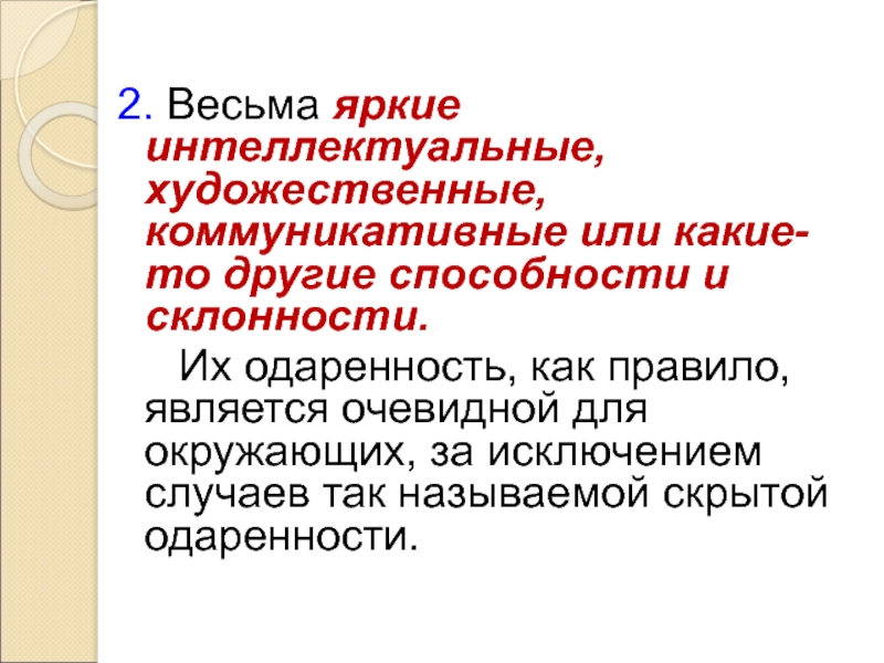Слайд 92. Весьма яркие интеллектуальные, художественные, коммуникативные или какие-то другие способности и