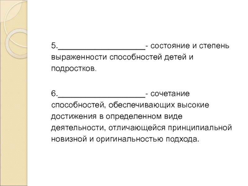 5.___________________- состояние и степень выраженности способностей детей и подростков.