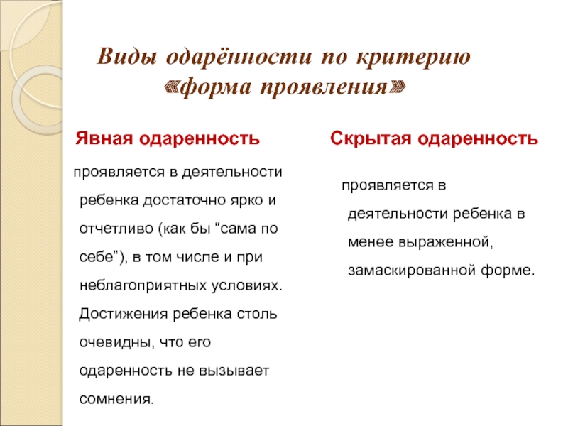 Их одаренность, как правило, является очевидной для окружающих, за исключением случаев так называемой скрытой одаренности.