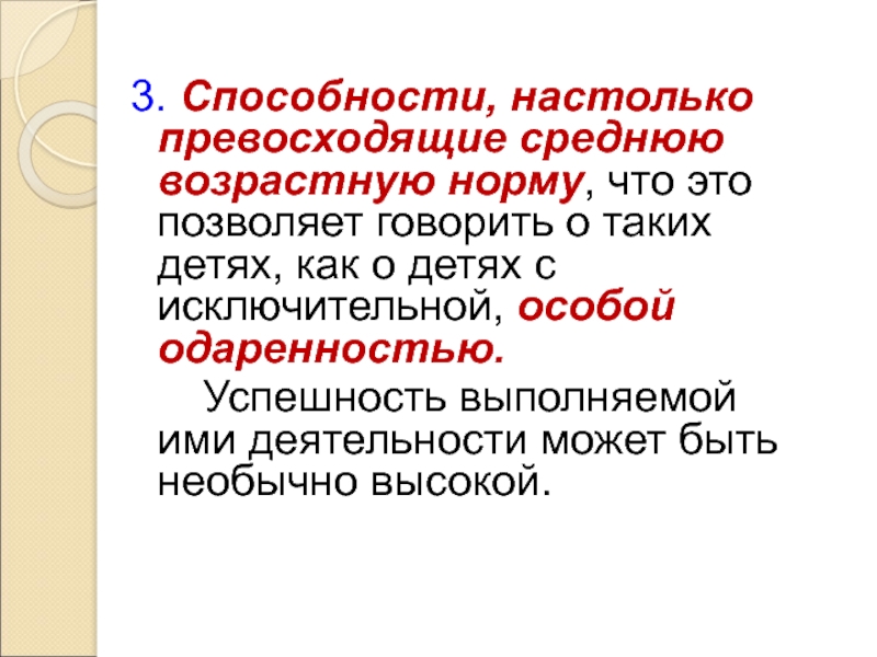 Слайд 103. Способности, настолько превосходящие среднюю возрастную норму, что это позволяет говорить