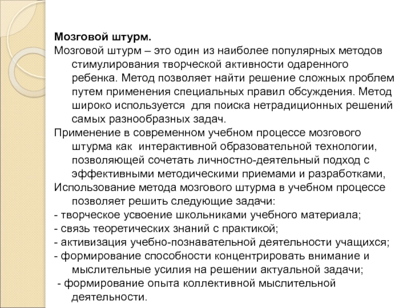 Вошли в практику решения проблем одаренных детей такие приемы, как