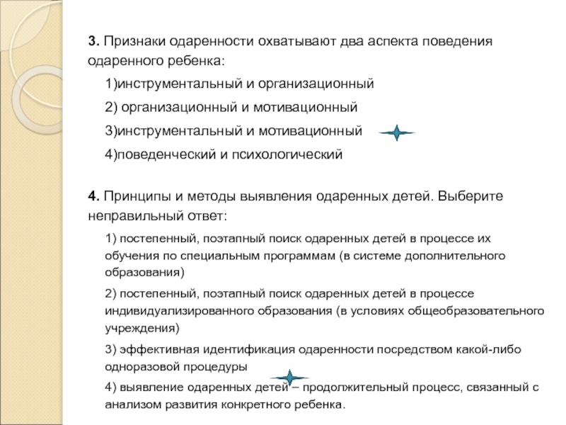 4. Принципы и методы выявления одаренных детей. Выберите неправильный ответ: