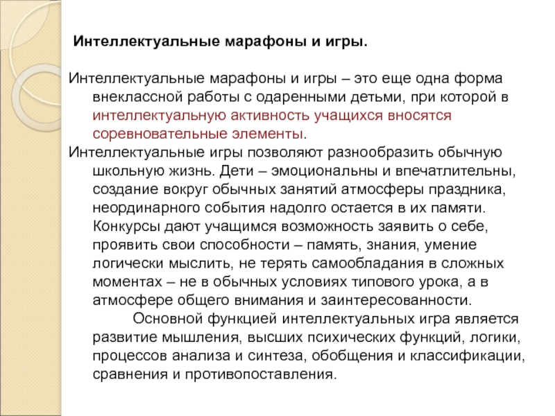 5. Главным вектором в работе с одаренными детьми является развитие мыслительных процессов.