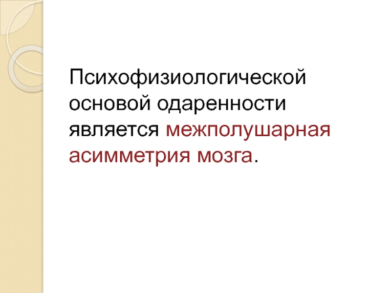 Психофизиологической основой одаренности является межполушарная асимметрия мозга.