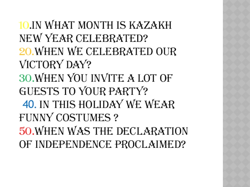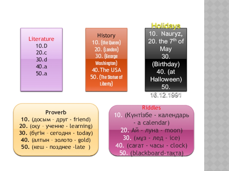 10. (Күнтізбе - календарь - а calendar)