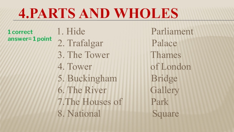 1 correct answer= 1 point