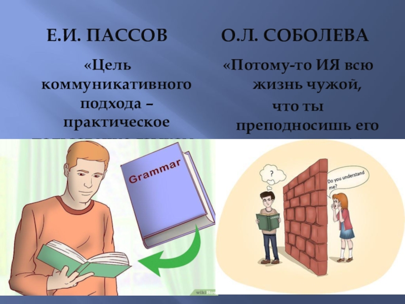 Е.И. ПассовО.л. сОБОЛЕВА«Цель коммуникативного подхода – практическое пользование языком»«Потому-то ИЯ всю жизнь чужой, что ты преподносишь его
