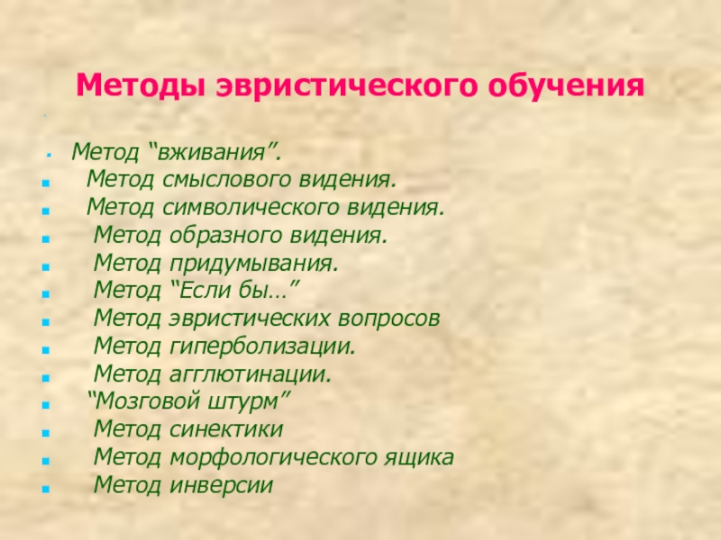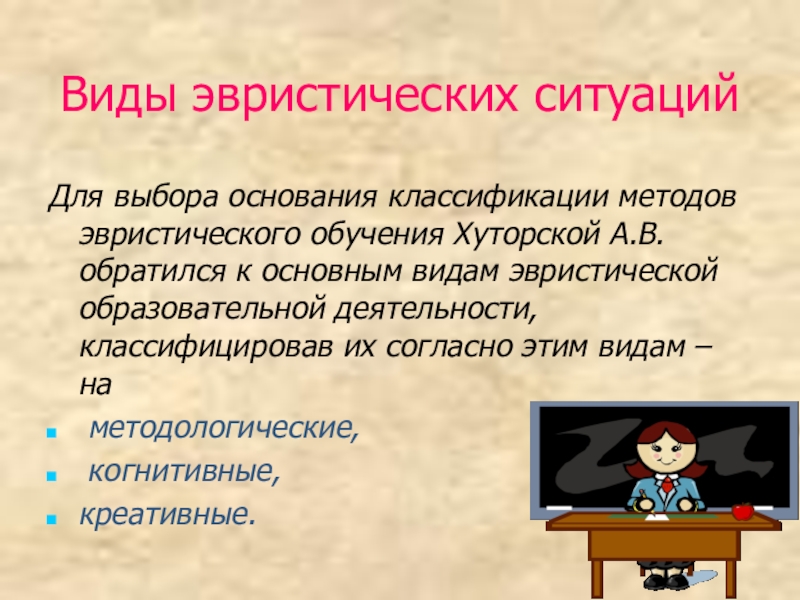 Для выбора основания классификации методов эвристического обучения Хуторской