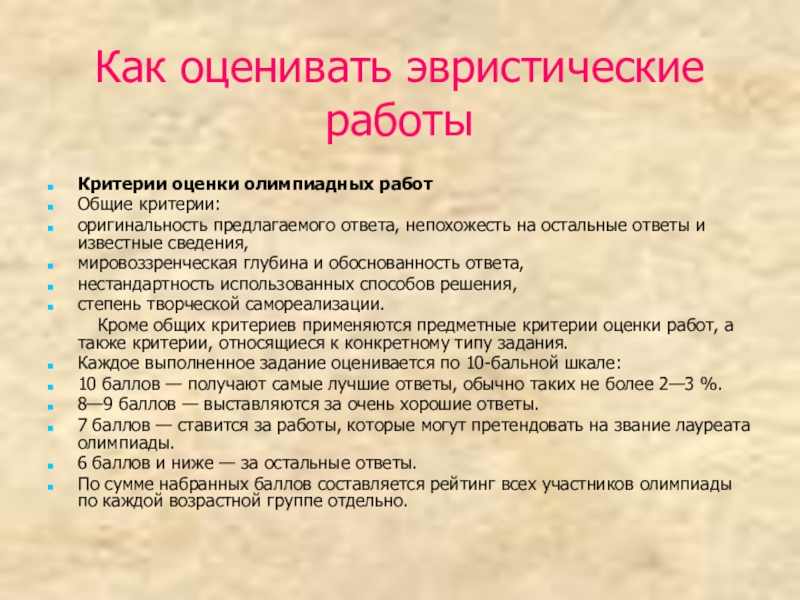 7 баллов — ставится за работы, которые могут претендовать на звание лауреата олимпиады.