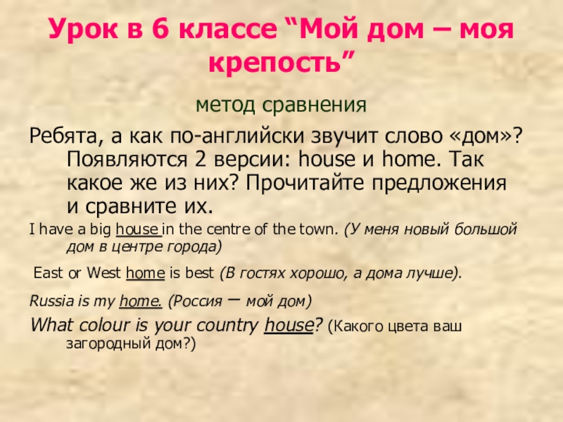 Слайд 19Урок в 6 классе “Мой дом – моя крепость”