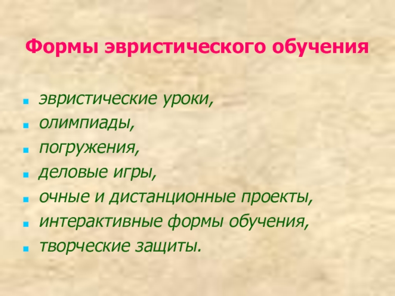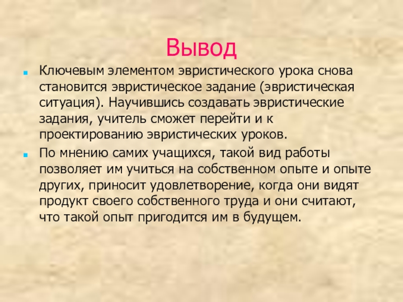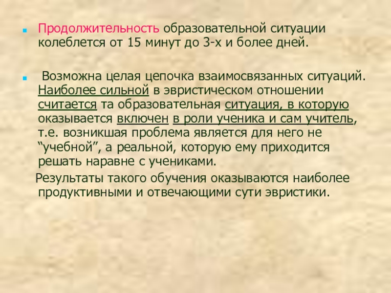 Результаты такого обучения оказываются наиболее продуктивными и отвечающими сути эвристики.