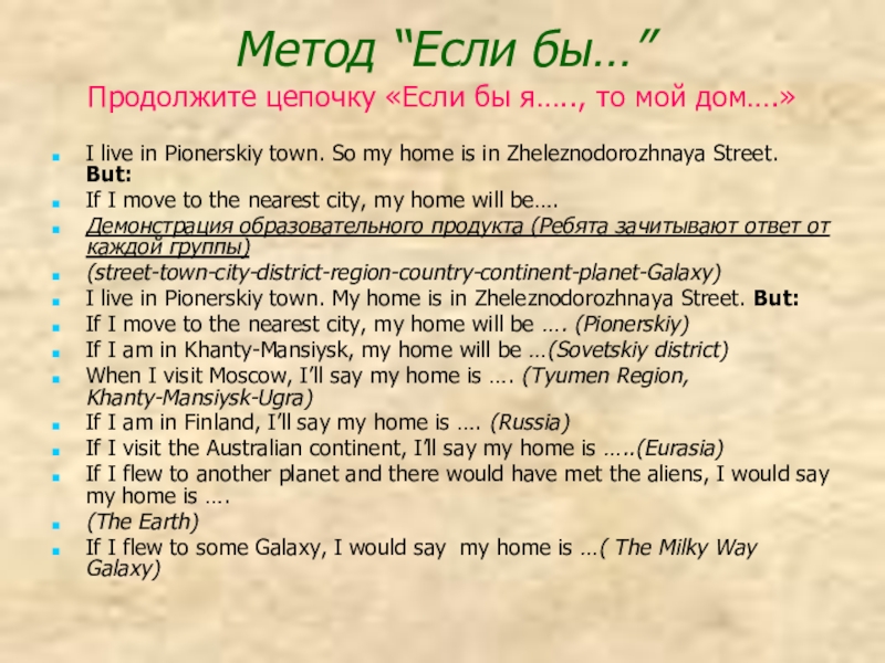 Продолжите цепочку «Если бы я….., то мой дом….»