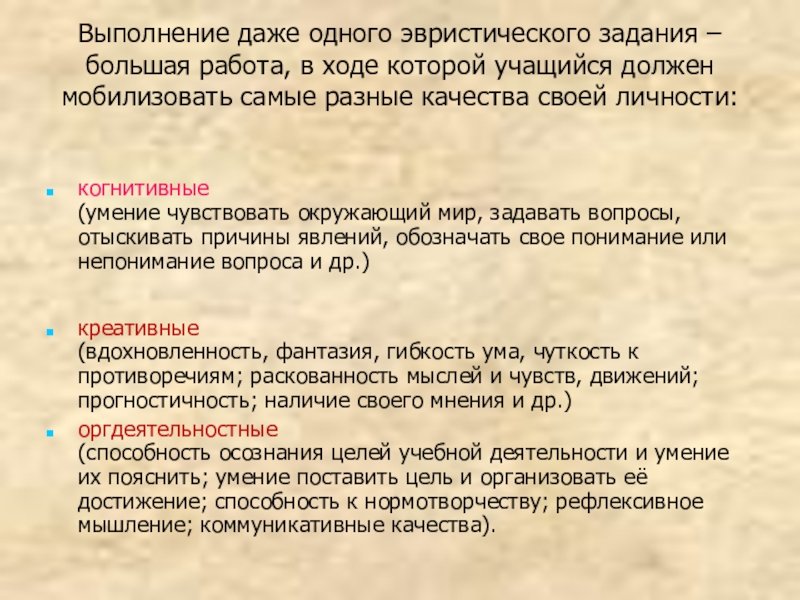 Слайд 8Эвристические задания отличаются от тех заданий, которые предлагаются в процессе реализации