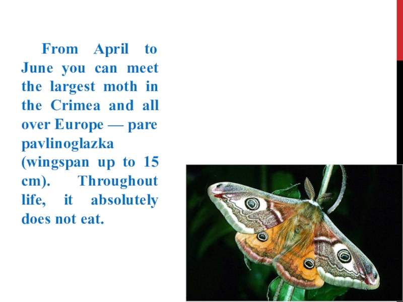 From April to June you can meet the largest moth in the Crimea and all over Europe