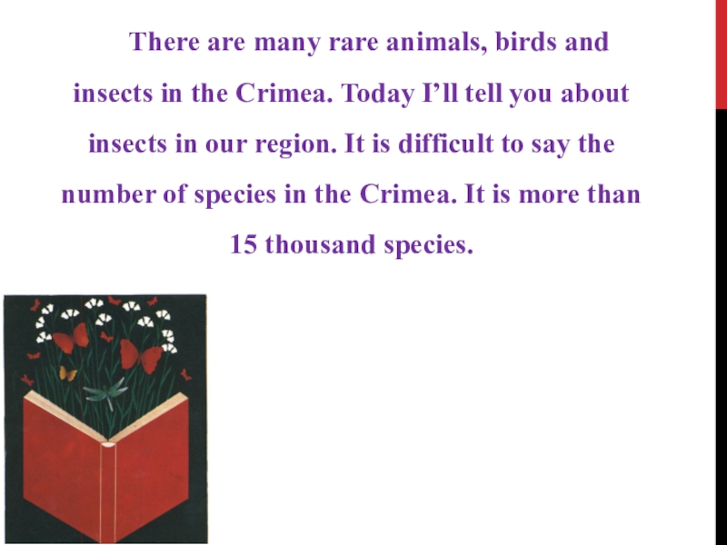 Слайд 3There are many rare animals, birds and insects in the Crimea.