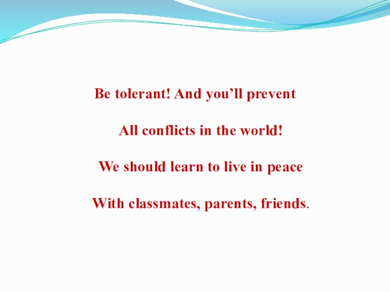 Слайд 16Be tolerant! And you’ll prevent