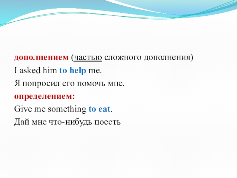 Слайд 12дополнением (частью сложного дополнения)