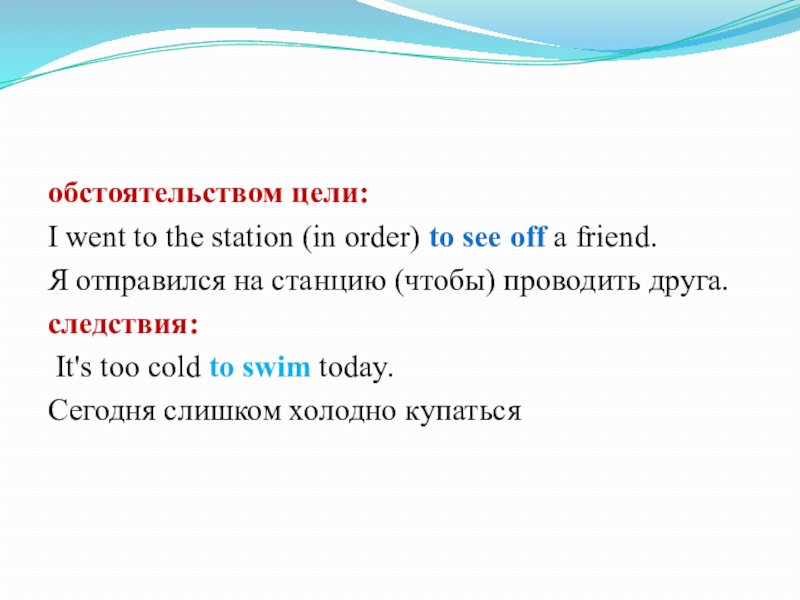 Слайд 13обстоятельством цели: