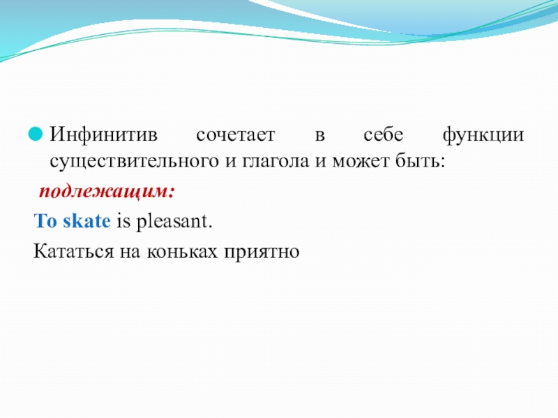 Слайд 10Инфинитив сочетает в себе функции существительного и глагола и может быть: