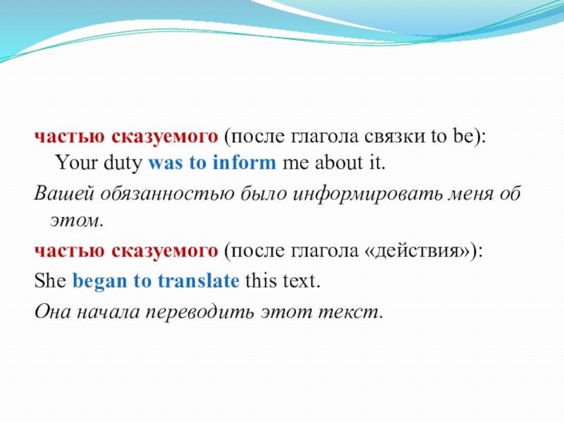 Слайд 11частью сказуемого (после глагола связки to be):