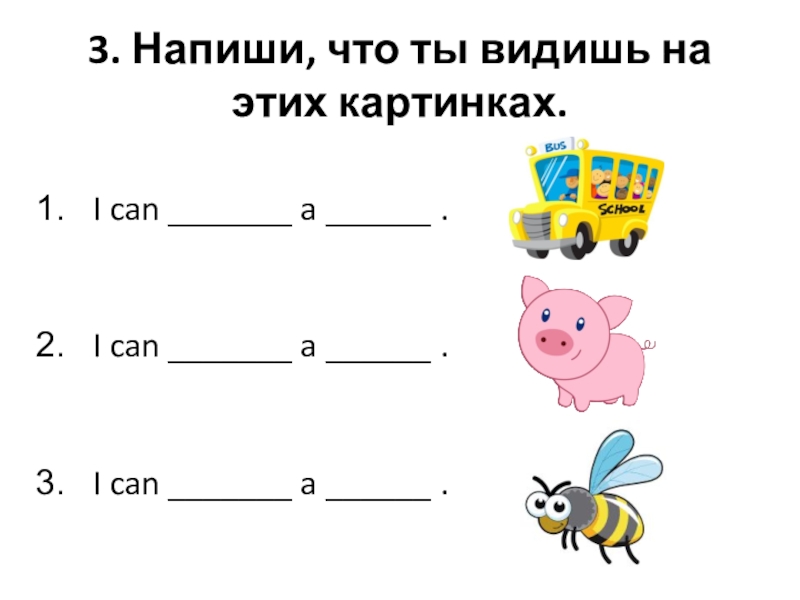 3. Напиши, что ты видишь на этих картинках.I can _______ a ______ .I can _______ a ______