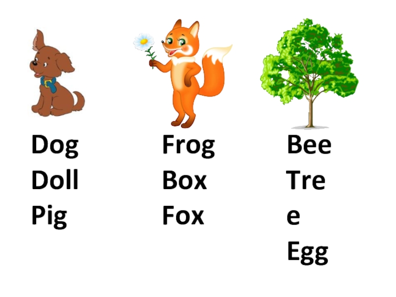 DogDollPigFrogBoxFoxBeeTreeEgg