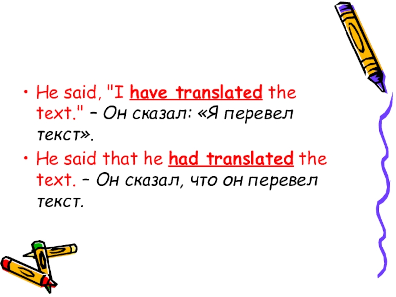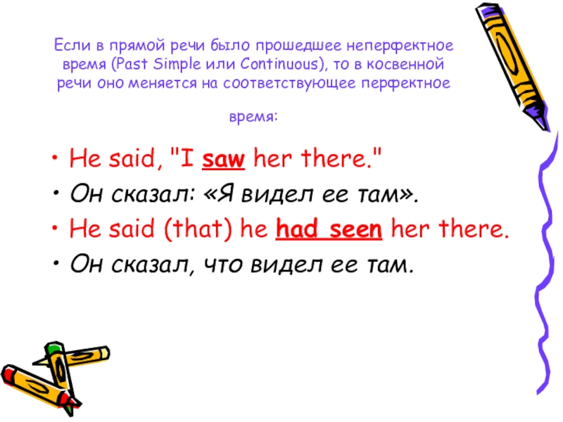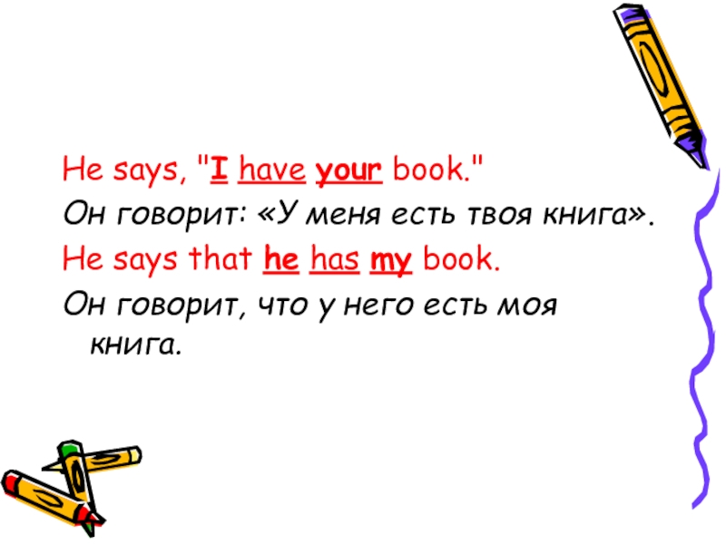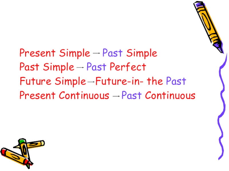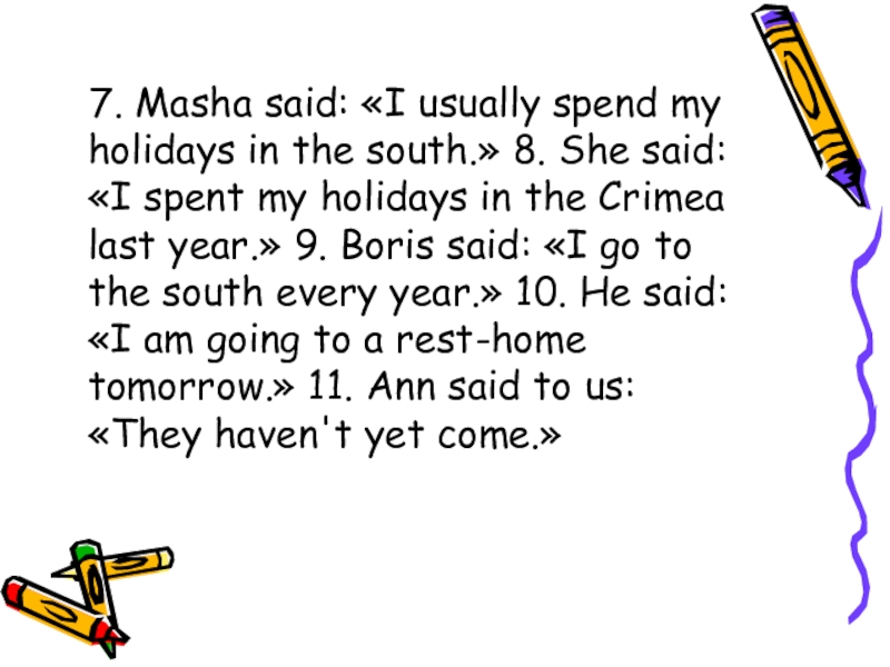 He says (has said, will say), "I sent them the catalogue on Monday." - Он говорит (сказал, скажет): «Я послал им каталог в понедельник».